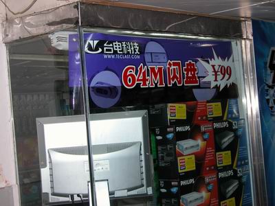 商科廣州分公司從8月底開始,將臺電全系列的閃盤64M容量的售價降到099元。
