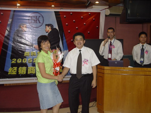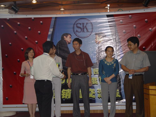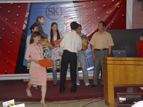 又一波高潮來了,介紹完產(chǎn)品還有大抽獎呢。幸運之神會落在誰的頭上呢,K8 主板,6200顯卡,256M MP3,康寶光驅(qū),哇,商科好大手筆哦,得獎的經(jīng)銷商笑逐顏開