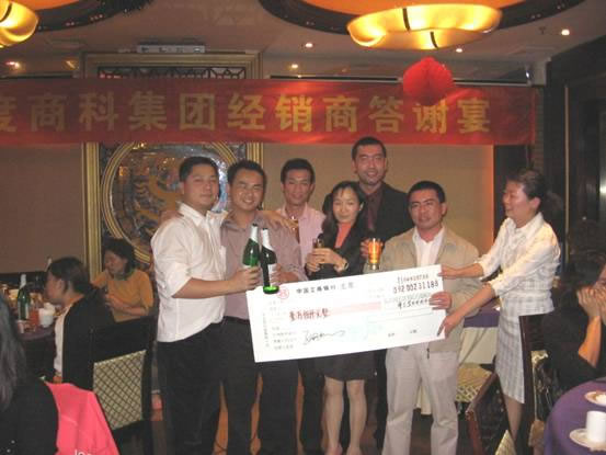 2006年1月17日,商科集團廣州分公司與100多位經(jīng)銷商濟濟一堂,舉行了經(jīng)銷商答謝宴,感謝過去一年各位經(jīng)銷商對商科集團的支持,當晚還頒發(fā)了“年度個人貢獻獎”,“年度公司貢獻獎”,“年度優(yōu)秀代理商獎”,獎品和獎金豐厚,氣氛熱烈,讓我們一起看看當晚的盛況。
