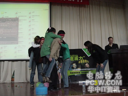 這為同學乃實況高手,其在PES5游戲中的配合令人眼花繚亂,也吸引了其他觀看巡展的武大同學們。