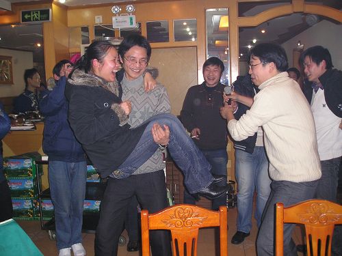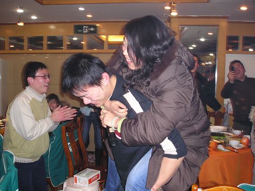 嘿嘿,獎品也不是白拿滴,總得付出點,以下便是他們表演的節目了,反串,豬八戒背媳婦,花樣真不少