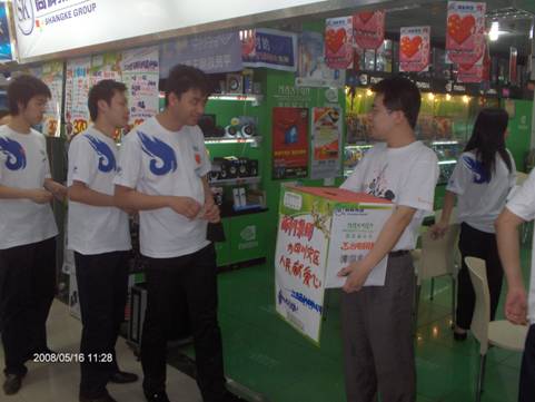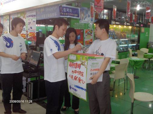 1、一方有難八方支援一直是中華民族優良的傳統,天災無情人有情,在我們的兄弟姐妹正在受到災難折磨的時候,作為一個有良知的中國人,我們是不是更應該拿出自己的一片愛心,有人的出人,有力的出力,用我們的愛心來支援一下災區的同胞們?江西商科電腦公司吳暉經理率先向災區進行了愛心捐款。