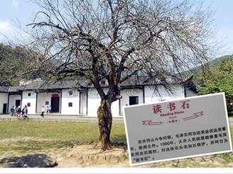 1927.10.24毛主席來到井岡山第一個(gè)住所—白屋,房前一棵大樹下的“讀書石”。