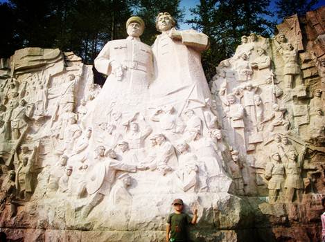 晚上我們到井岡山市區(qū),觀看紅軍劇場的井岡山大型實(shí)景演出。整個(gè)演出由600多名當(dāng)?shù)氐娜罕娧輪T參演,雖然演員都是業(yè)余的,但1個(gè)多小時(shí)的演出卻是感人肺腑。尤其是賀子珍把孩子托給老鄉(xiāng)大媽與孩子離別的這場戲,很多觀眾都流下了眼淚。演出的最后毛主席帶領(lǐng)紅軍離開井岡山,幾百人的紅軍隊(duì)伍,牽著騾馬,經(jīng)過觀眾席與大家道別后依次列隊(duì)劇場出口的兩旁,送觀眾出場,與觀眾合影,感覺好像回到了那個(gè)軍民一家親的年代。