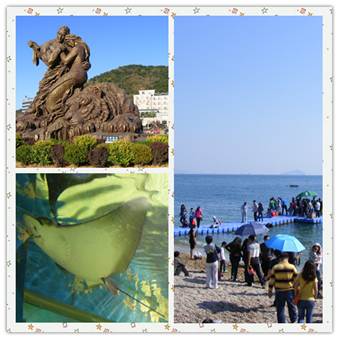 第三天也是我們行程的最后一天了,這一天行程也很緊湊首先來到了俄羅斯風情街,在哪里才真正知道了歐洲的建筑風格。最后一個景點也是此行我最期待的棒棰島,棒棰島位于大連市濱海路東段,大連市東南約5公里處。是一處以山、海、島、灘為主要景觀的風景勝地。國內幾大國賓館之一、著名的棒棰島賓館就坐落在這里。這里三面環(huán)山,一面瀕海;北面為群山環(huán)繞,南面是開闊的海域和平坦的鵝卵石沙灘。棒槌島名字的來歷是因離岸500米遠處的海面上有一小島突兀而立,遠遠望去,極象農家搗衣服用的一根棒槌,故稱棒槌島。在哪里體會了大連海水的美麗。大連極地海洋世界那里是孩子們的天堂,國慶人山人海我和同事還是帶著兒子看了動物表演!其樂無窮撒!