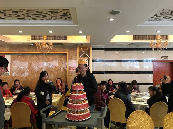 返程當天,恰逢是商科集團總經(jīng)理孫總的生日,午飯期間,大伙們悄悄準備了生日蛋糕和小禮物,并送上生日歌和美好的祝福,現(xiàn)場歡聲不斷,連旁邊桌的朋友們都忍不住放下手上的美味,共同為孫總慶賀生日。