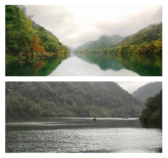 清溪、緩流、薄霧、遠山,一幅精致、典雅的潑墨山水!