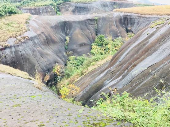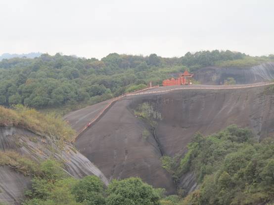 午飯后來到今天的第二個景點“飛天山”。飛天山為丹霞地貌,大旅行家徐霞客曾贊嘆飛天山“無寸土不麗,無一山不奇”,并鐫刻“寸土佳麗”。境區山頂相連,溝壑縱橫,精巧處如精雕細琢,巧奪天工,宏偉處如橫空出世,壯志凌云。