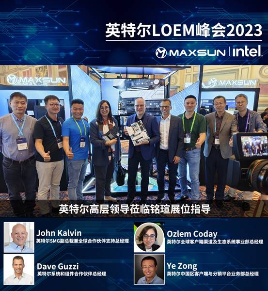 在銘瑄展位上,銘瑄以其展示的獨特創(chuàng)新產(chǎn)品吸引了眾多來賓的目光。其中由英特爾SMG副總裁兼全球合作伙伴支持總經(jīng)理 John Kalvin、英特爾系統(tǒng)和組件合作伙伴總經(jīng)理 Dave Guzzi、英特爾全球客戶端渠道及生態(tài)系統(tǒng)事業(yè)部總經(jīng)理 Ozlem Coday、英特爾中國區(qū)客戶端與分銷平臺業(yè)務(wù)部總經(jīng)理 Ye Zong等核心嘉賓帶領(lǐng)的指導(dǎo)團隊蒞臨銘瑄展位指導(dǎo),并對銘瑄表示了高度認(rèn)可和贊譽。