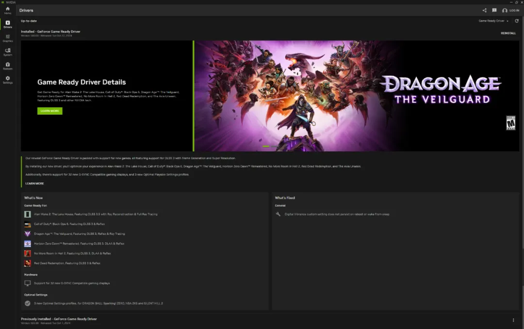 在驅(qū)動程序頁面上,NVIDIA App 進(jìn)行了優(yōu)化,以要點形式清晰突出新增和改進(jìn)內(nèi)容,以及支持的游戲列表,方便用戶瀏覽。想要切換 Studio Ready 驅(qū)動或 Game Ready 驅(qū)動的用戶只需點擊屏幕右上角的下拉菜單即可。