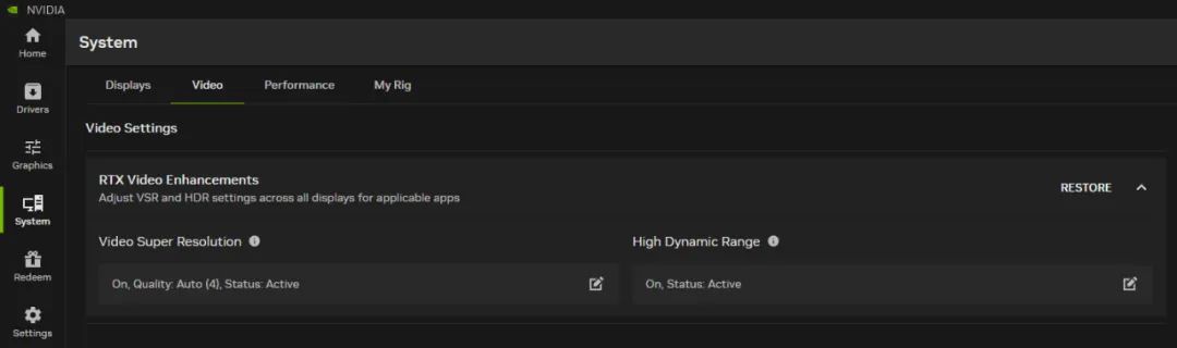 系統(tǒng)頁面是顯示、視頻和 GPU 選項的一站式平臺,包含增強的性能調(diào)優(yōu)功能,以安全地提升幀率。顯示器承載 G-SYNC 顯示選項、分辨率和刷新率控制以及顯示方向設(shè)置。未來將更新引入來自 NVIDIA 控制面板的其余顯示設(shè)置,例如 Surround 選項、自定義分辨率和多顯示器設(shè)置。