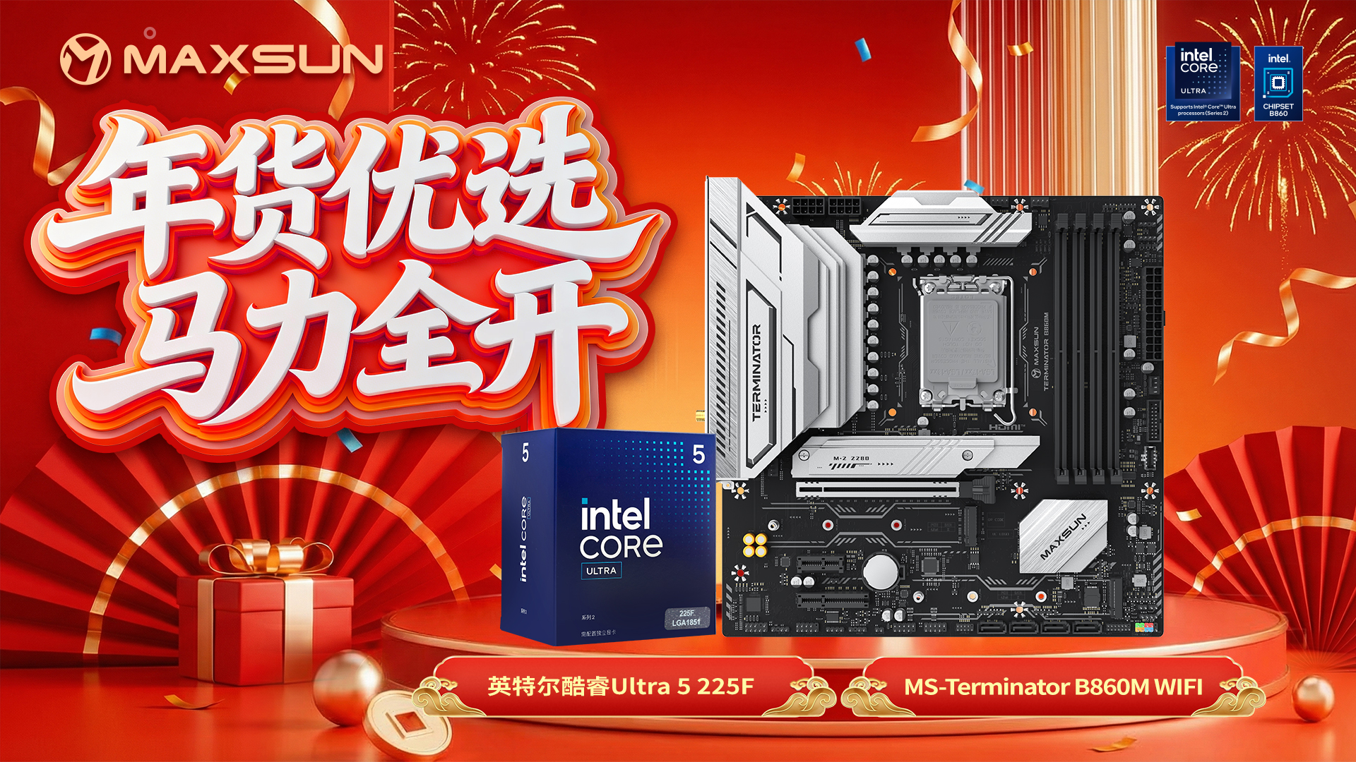 臨近新年,年貨節(jié)裝機(jī)熱潮來襲。無論是學(xué)生黨想要組裝入門主機(jī)、打工人計(jì)劃升級(jí)設(shè)備,還是游戲玩家籌備專屬電競主機(jī),一套高性價(jià)比硬件組合仍是大眾主流優(yōu)選。在此推薦一套兼顧性能與實(shí)用的年貨硬件組合 —— 銘瑄 Terminator B860M WIFI 主板搭配英特爾酷睿 Ultra 5 225F 處理器,這套組合能讓你以合理的預(yù)算,解鎖旗艦級(jí)的絲滑體驗(yàn),兼顧了高性價(jià)比與強(qiáng)悍性能,堪稱年貨節(jié)裝機(jī)性價(jià)比標(biāo)桿。
